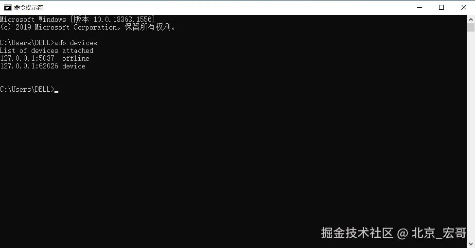 (1)查看是由于宏哥打开了两个模拟器,直接输入命令,系统不知道进入那个模拟器,你必须指定一个。如下图所示: