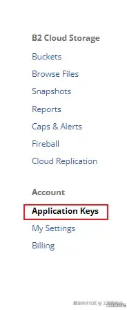 在Backblaze左侧任务栏点击Application Key