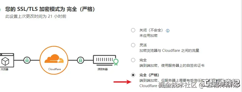 点击SSL/TLS,将加密模式从“flexible”更改为“full”,