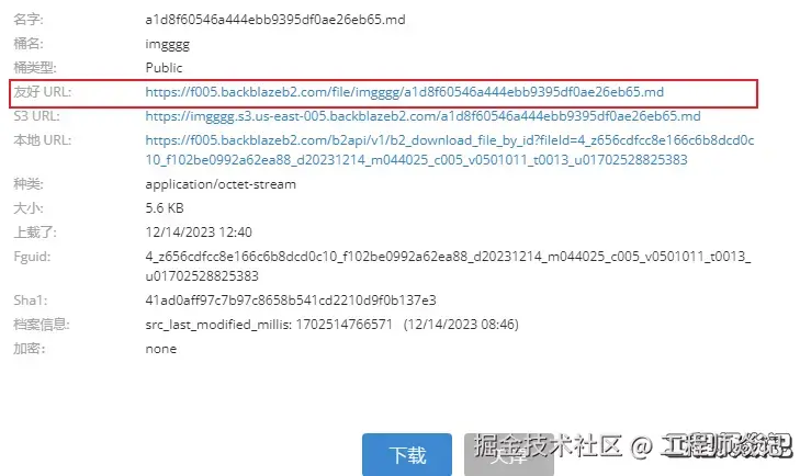 击上传的文件,然后就可以看到文件的URL链接了,这个链接就可以分享出去了。