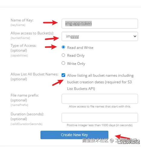 - 创建秘钥。点击Create New Key