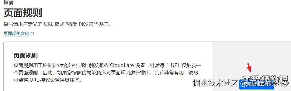 - 点击域名左侧概述,在整个页面的右边栏的中下位置有个页面规则,点击。