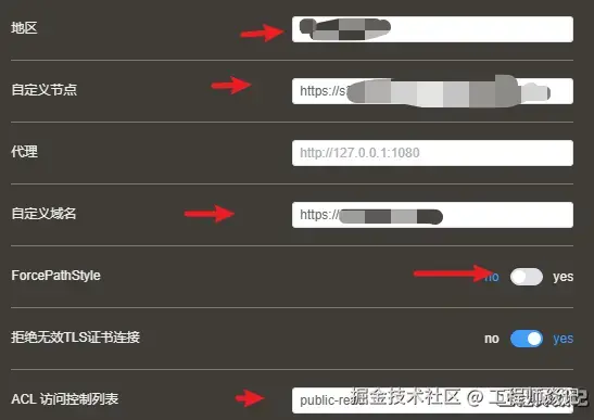 endpoint将地址填入自定义节点。 - 自定义域名:最后会生成的图片域名,和图片上传位置没有直接关系,填入自己购买的域名。