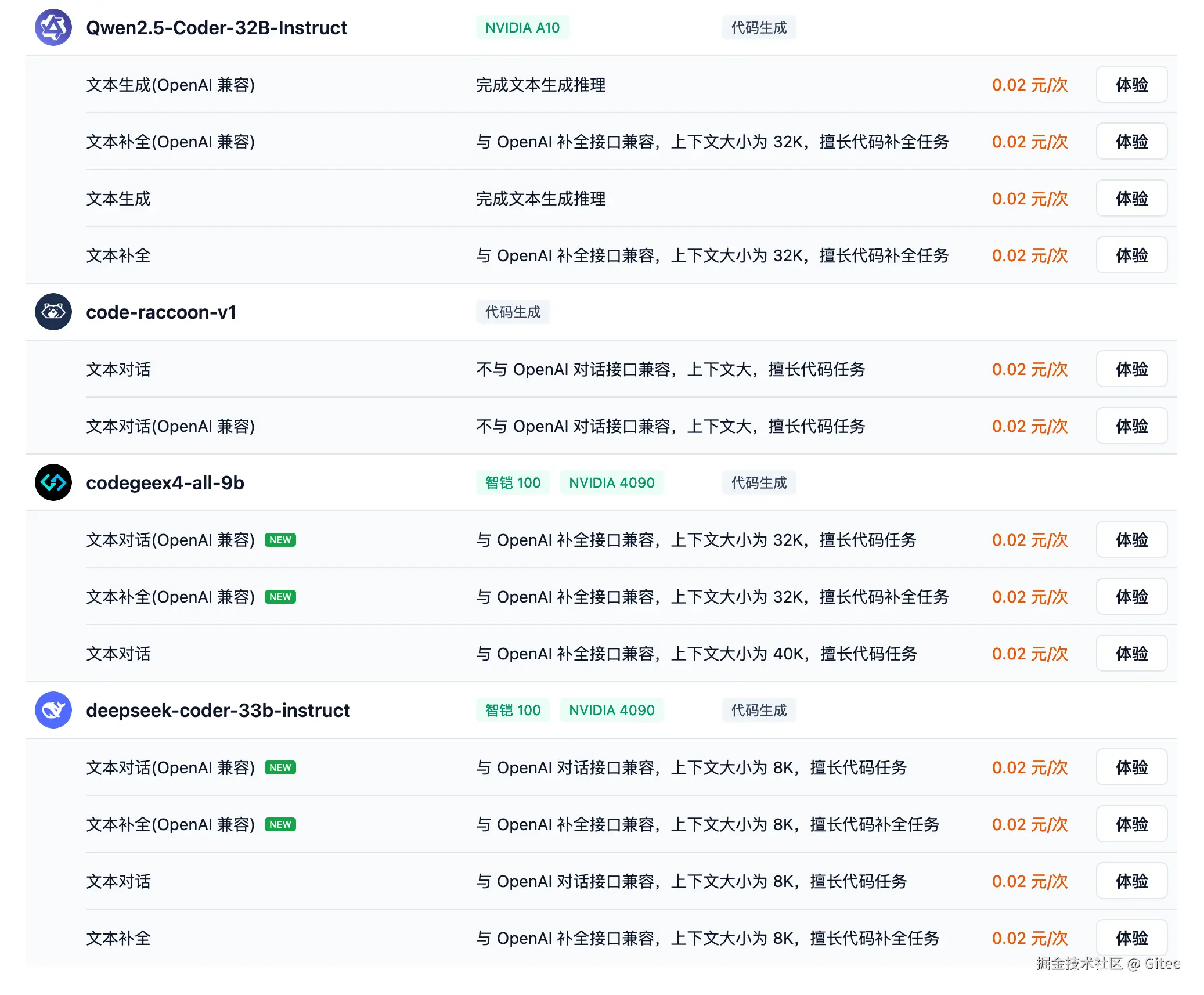 你可以用极低的价格调用包含Qwen2.5-Coder-32B-Instruct在内的多款代码生成模型且不必担心因网络问题导致的故障,体验低成本、流畅、稳定、高效的 AI 编码体验。