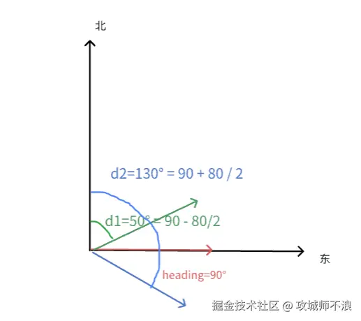 d2 是由 heading 加上半个 angle 得到的,表示扇形