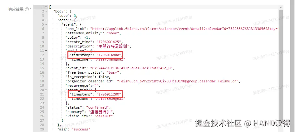 飞书提供的日程接口返回的信息中,时间是以Unix时间戳格式呈现的。为便于用户理解,需在展示前进行时间戳的转换。这一步是必要的步骤,因为Unix时间戳格式并不直观,需要将其转换为更易于理解的格式,如年-月-日 时:分:秒。