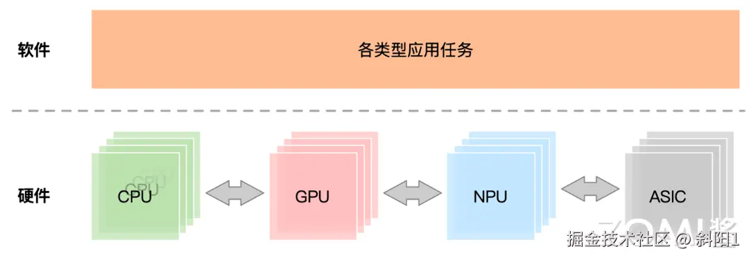 现在正处于计算体系变革和编译体系变革 10 年,避免为了某个应用加速而去进行非必要大量上层应用迁移对接到硬件 API,应交由一致性的宏架构(多种架构组合)平台(编译/操作系统)。