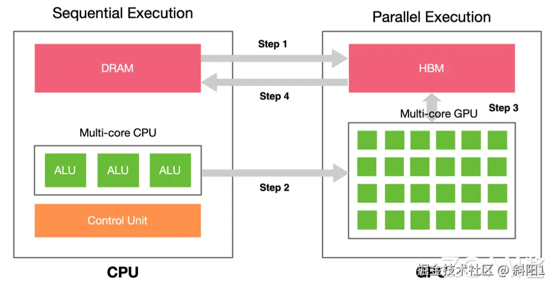 - 多个 GPU 内核并行执行,处理准备好的数据(图中 Step3)
