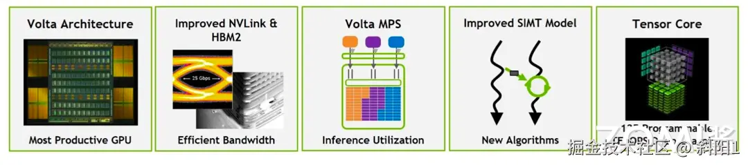 (3)专门为深度学习优化了 SM 架构,针对 AI 计算首次提出第一代张量核心 Tersor Core,提高深度学习计算中卷积运算进行加速;