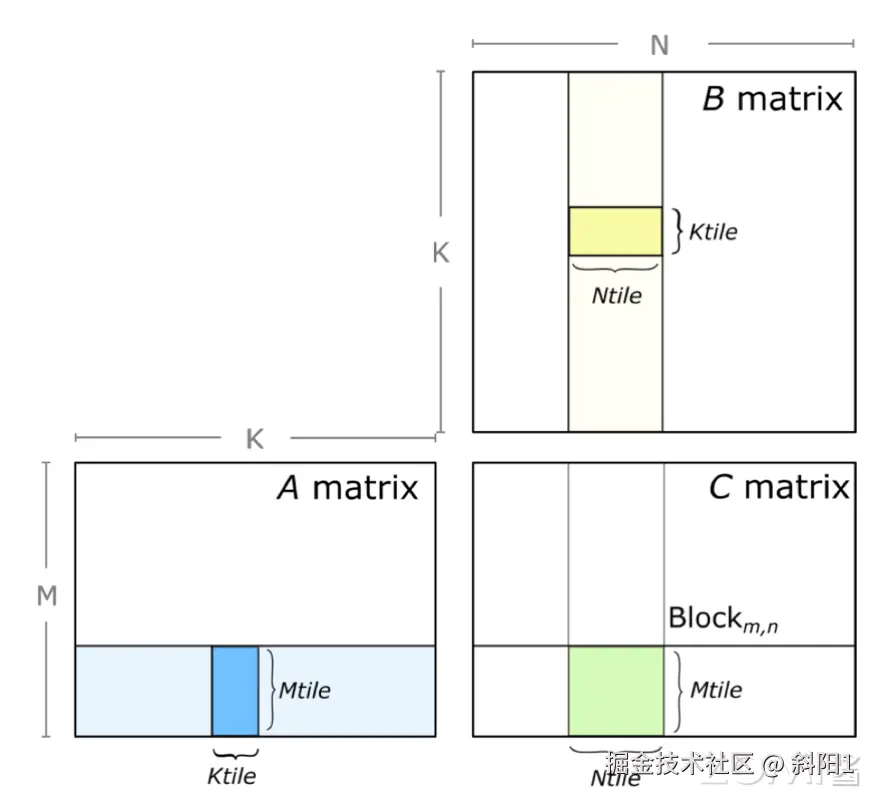 首先,矩阵在进行 GEMM 计算之前会被分块,这些分块后的矩阵存储在全局内存(Global Memory)中。全局内存是 GPU 上最大的内存区域,用于存储计算过程中需要访问的大量数据。