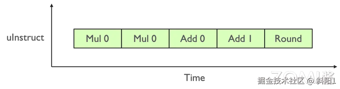 如上图所示,通过上面的绿色指令流水计算出了 ,通过黄色的流水线计算出了 ,接下来想要把所有的元素计算出来,就有大量的指令的流水去拼接。