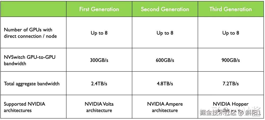 NVSwitch 在解决多 GPU 间的互联有以下优势和特性: