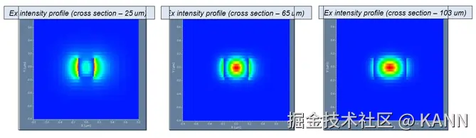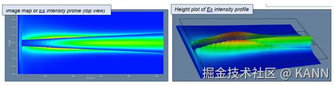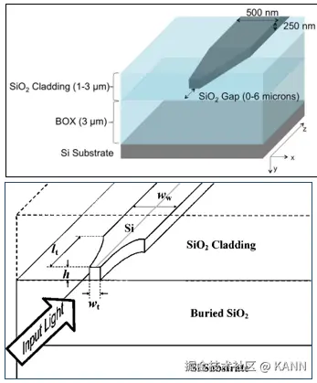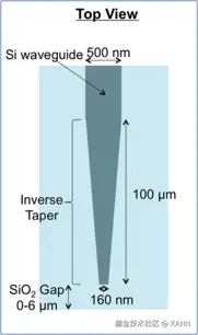 介绍 在高约束芯片上与亚微米波导上耦合光的两种主要方法是光栅或锥形耦合器。[1]耦合器由高折射率比材料组成,是基于具有纳米尺寸尖端的短锥形。[2]锥形耦合器实际上是光纤和亚微米波导之间的紧凑模式转换器。[2]锥形耦合器可以是线性[1]或抛物线性[2]过渡。选择Silicon-on-insulator(SOI)技术作为纳米锥和波导的平台,因为它提供高折射率比,包括二氧化硅层作为光学缓冲器,并允许与集成电子电路兼容。[2] [1] Jaime Cardenas, et al., “High Coupling Efficiency Etched Facet Tapers in Silicon Waveguides,” IEEE Phot. Tech. Lett. VOL. 26, NO. 23, 2380-2382 (2014)[2] Vilson R. Almeida, et al., "Nanotaper for compact mode conversion," Opt. Lett. 28, 1302-1304 (2003); 3D FDTD仿真要模拟的关键部件是来自参考文献[1]的线性锥形硅波导(160 nm至500 nm宽度变化超过100 um长度,250 nm高度),它埋在二氧化硅波导中(注意:使用的尺寸减小了(1.5 umx1.5 umx105 um),以便达到更快的模拟时间) 为了精确模拟线性锥形硅波导,锥形的网格尺寸应该要设置密度大一些,因此在这种情况下使用不均匀的网格。光源在时域中设置为CW( = 1.55 um),在空间域上设置为高斯横向分布,并且位于二氧化硅波导的硅纸尖端。注意:模拟时间应足够长,以确保稳态结果 仿真结果 顶视图展示了锥形硅波导的有效耦合。 底部视图显示了不同位置的模式转换(左:25 um,中间:65 um,右:103 um)  |