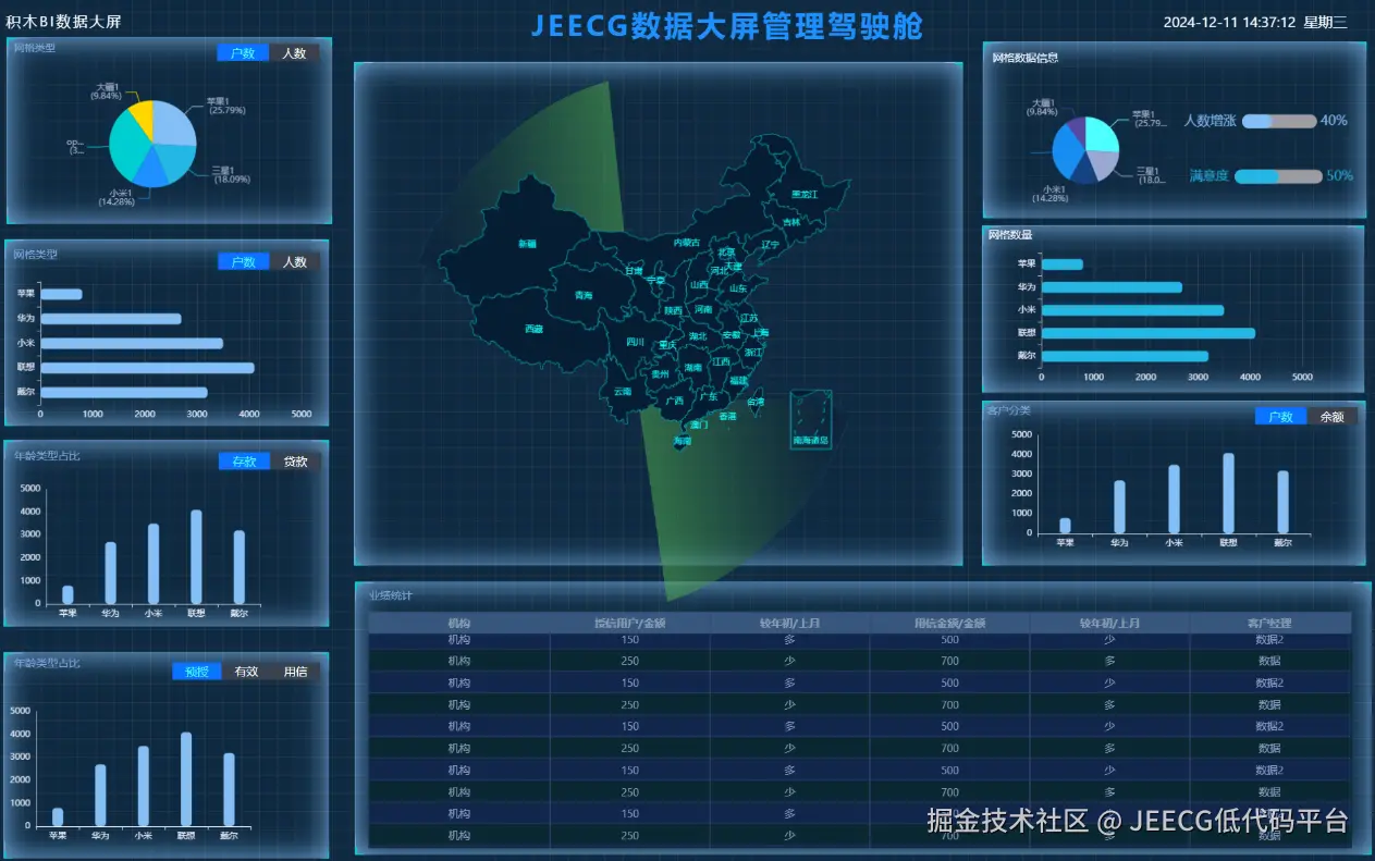 3.4 Jeecg数据大屏管理驾驶舱效果图