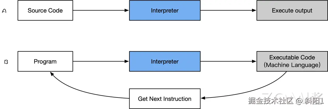解释器能够直接执行程序或脚本语言中编写的指令,而不需要预先将这些程序或脚本语言转换成目标代码或者机器码。典型的解释型语言有 Python、PHP 和 Matlab。