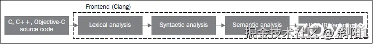 LLVM 的前端其实是把源代码也就是 C、C++、Python 这些高级语言变为编译器的中间表示 LLVM IR 的过程。
