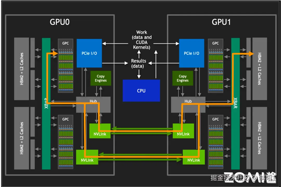 NVLink 的出现为 GPU 间的互联提供了一种革命性的方式,使得不同 GPU 之间的通信和数据共享变得更加高效和直接。