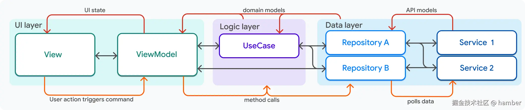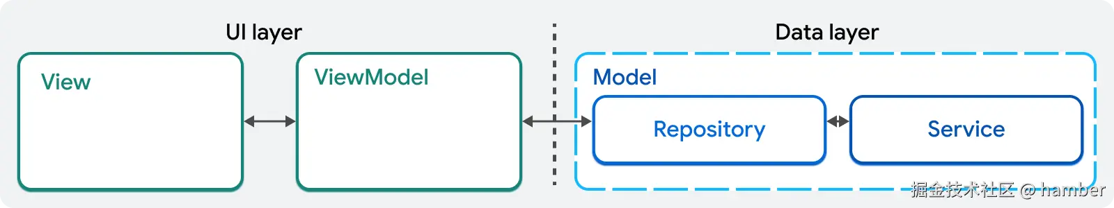 这些层被称为“层”,因为每层只能与直接上下的层通信。UI 层不应直接知道数据层的存在,反之亦然。