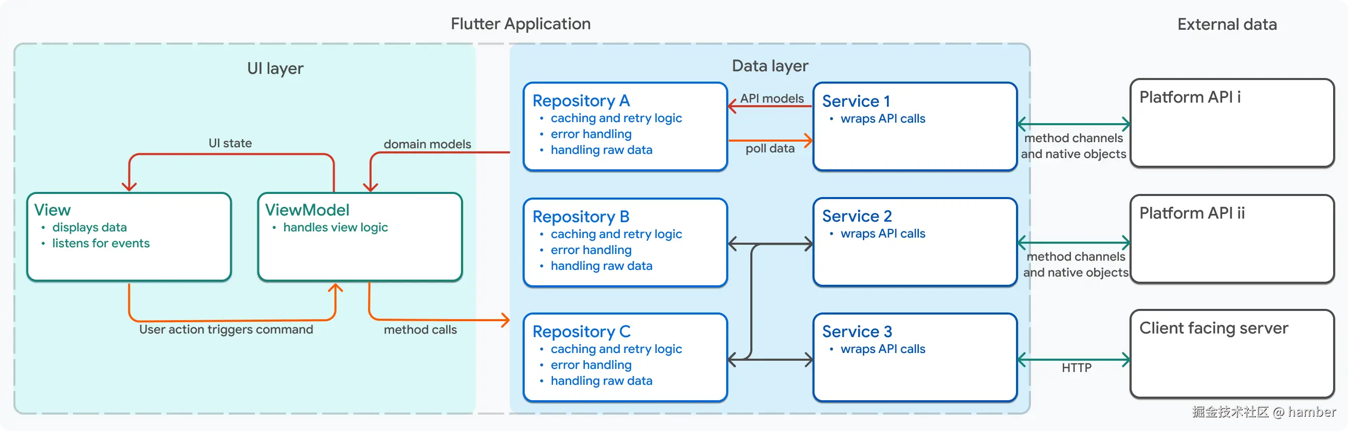 职责分离 是设计 Flutter 应用时最重要的原则。您的 Flutter 应用应分为两个主要层次:UI 层 和 数据层。
