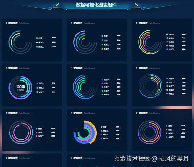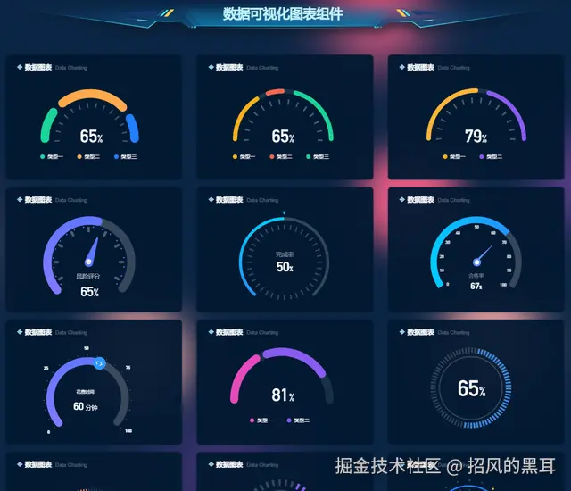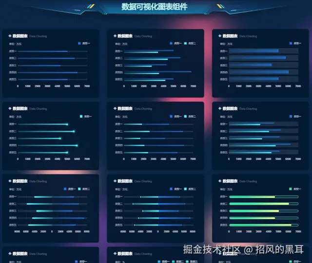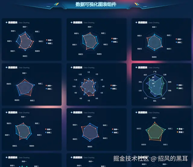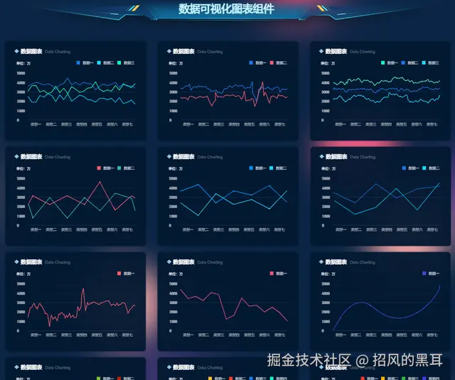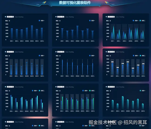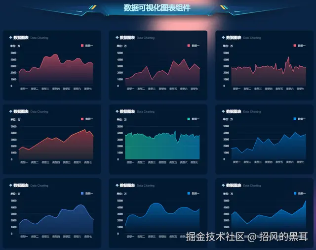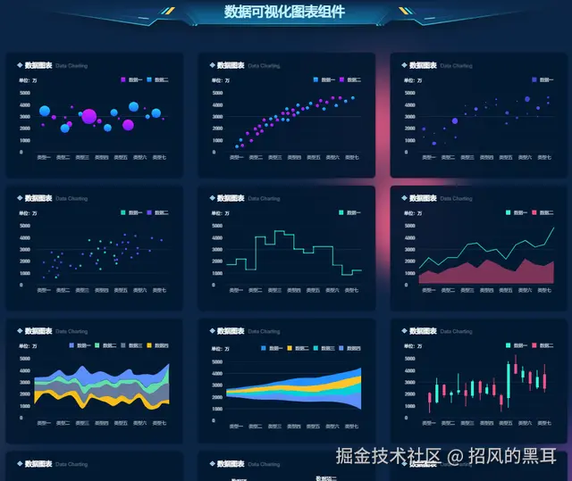 推出了一款高保真数据可视化大屏图表组件库,旨在为用户提供丰富的图表类型,使数据呈现更加直观、生动。本文将详细介绍该组件库中的各类图表元件,包括面积图、折线图、柱状图、条形图、圆环图、雷达图、仪表图以及综合类图表,以满足不同场景下的数据展示需求。