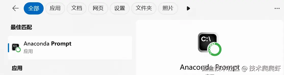 在搜索栏搜索 Anaconda Prompt 打开, conda的命令行