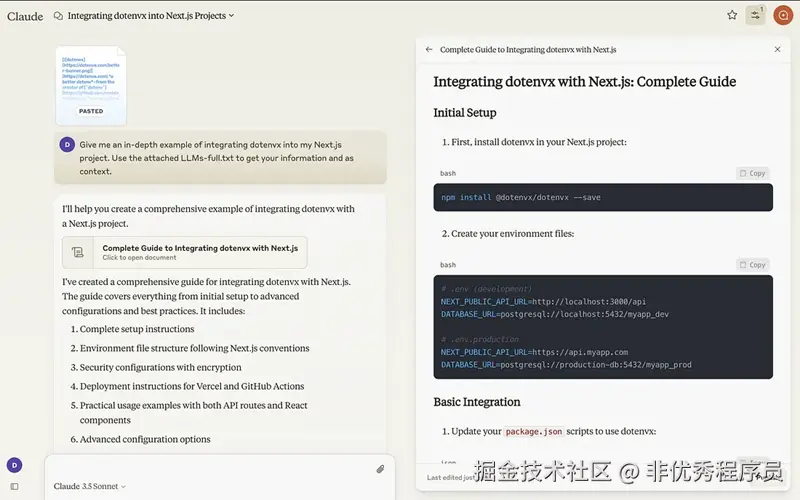 使用 Claude 的 llms-full.txt 文件的屏幕截图