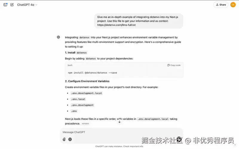 使用 ChatGPT 的 llms-full.txt 文件的屏幕截图
