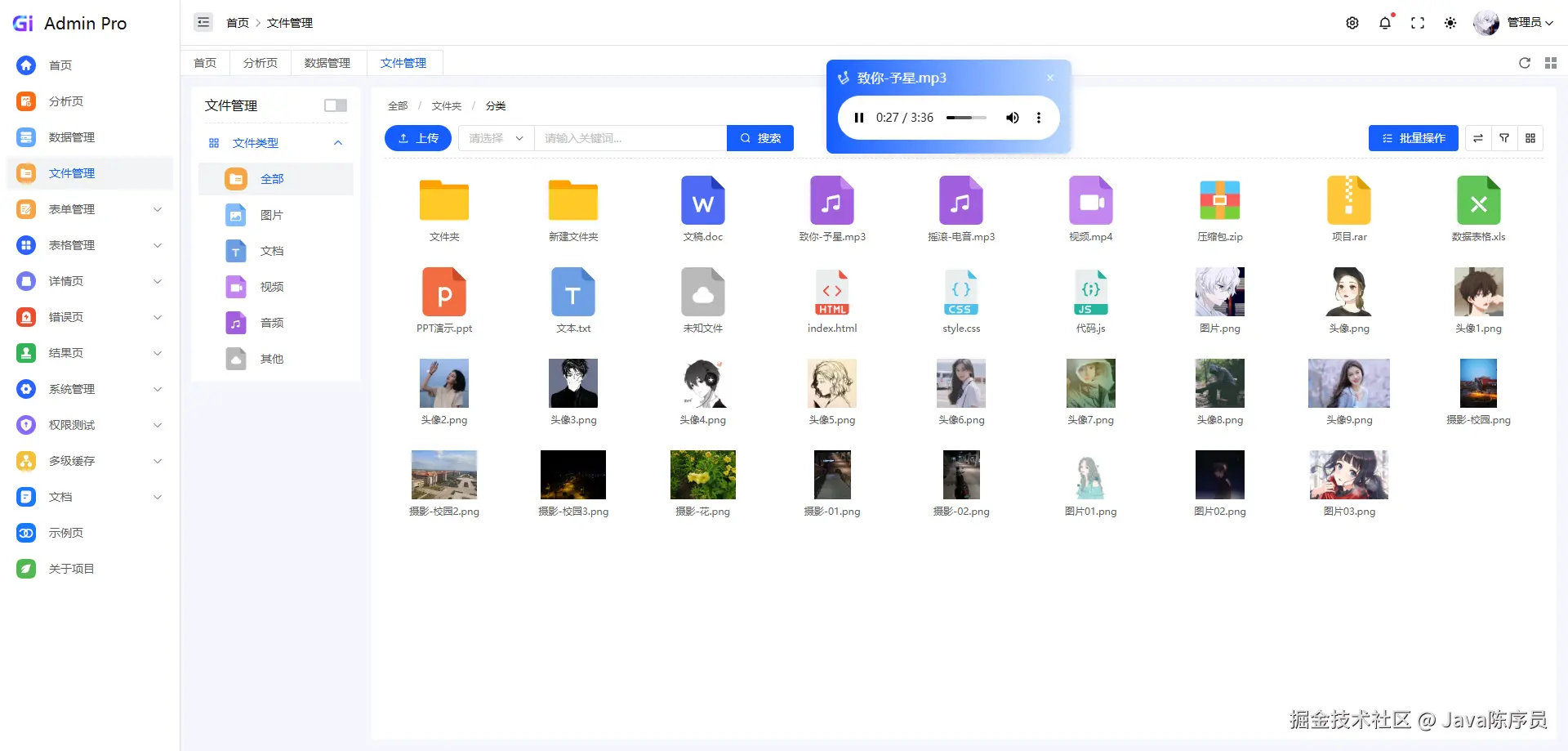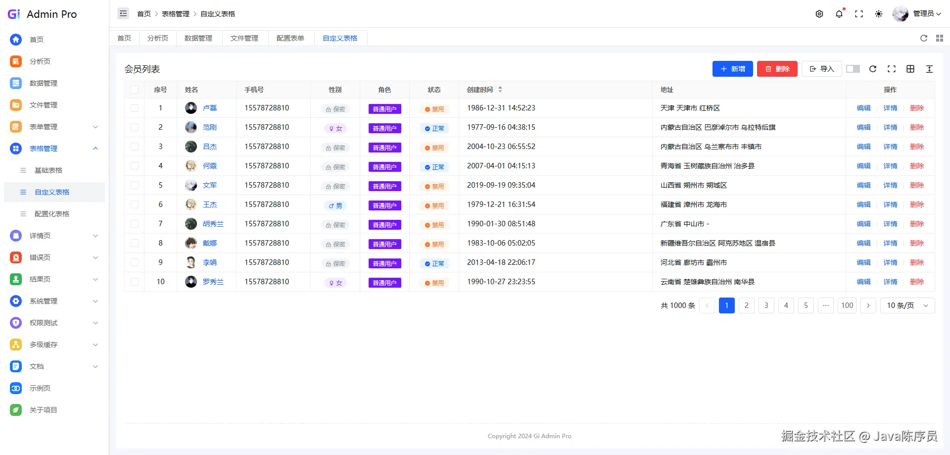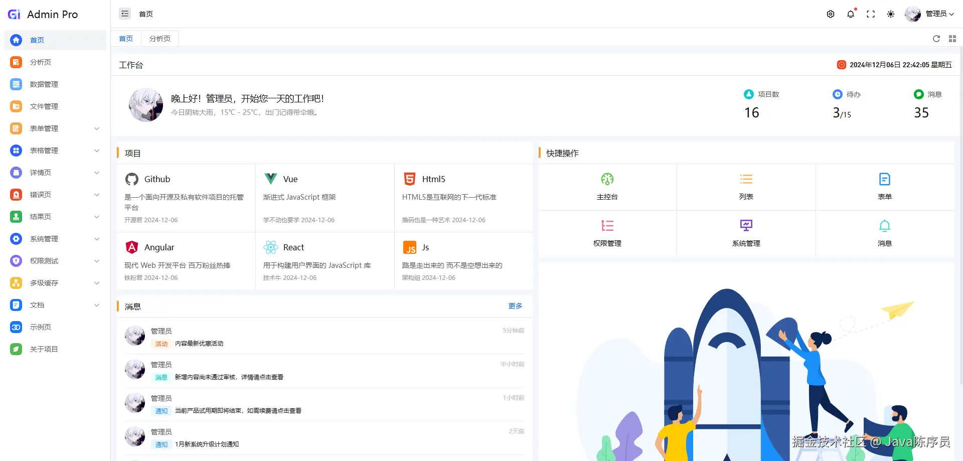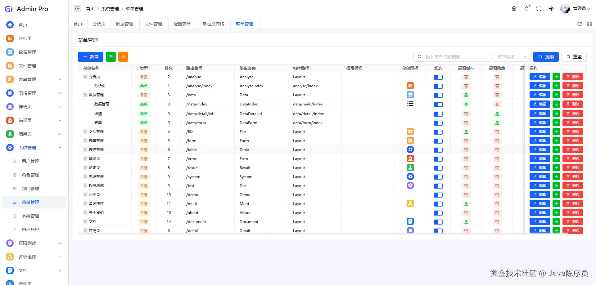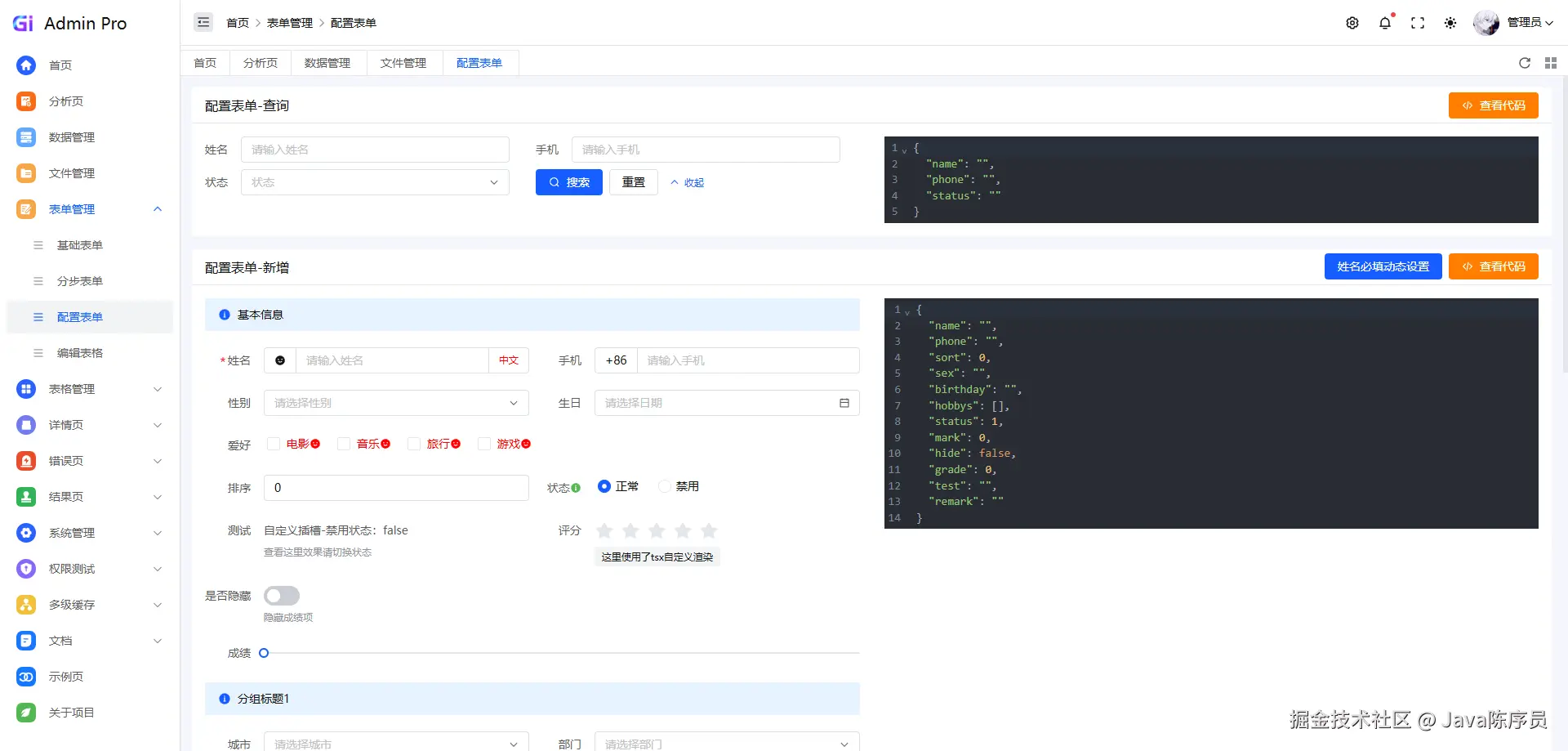 - 丰富的组件:多种表单、自定义表格、权限管理等