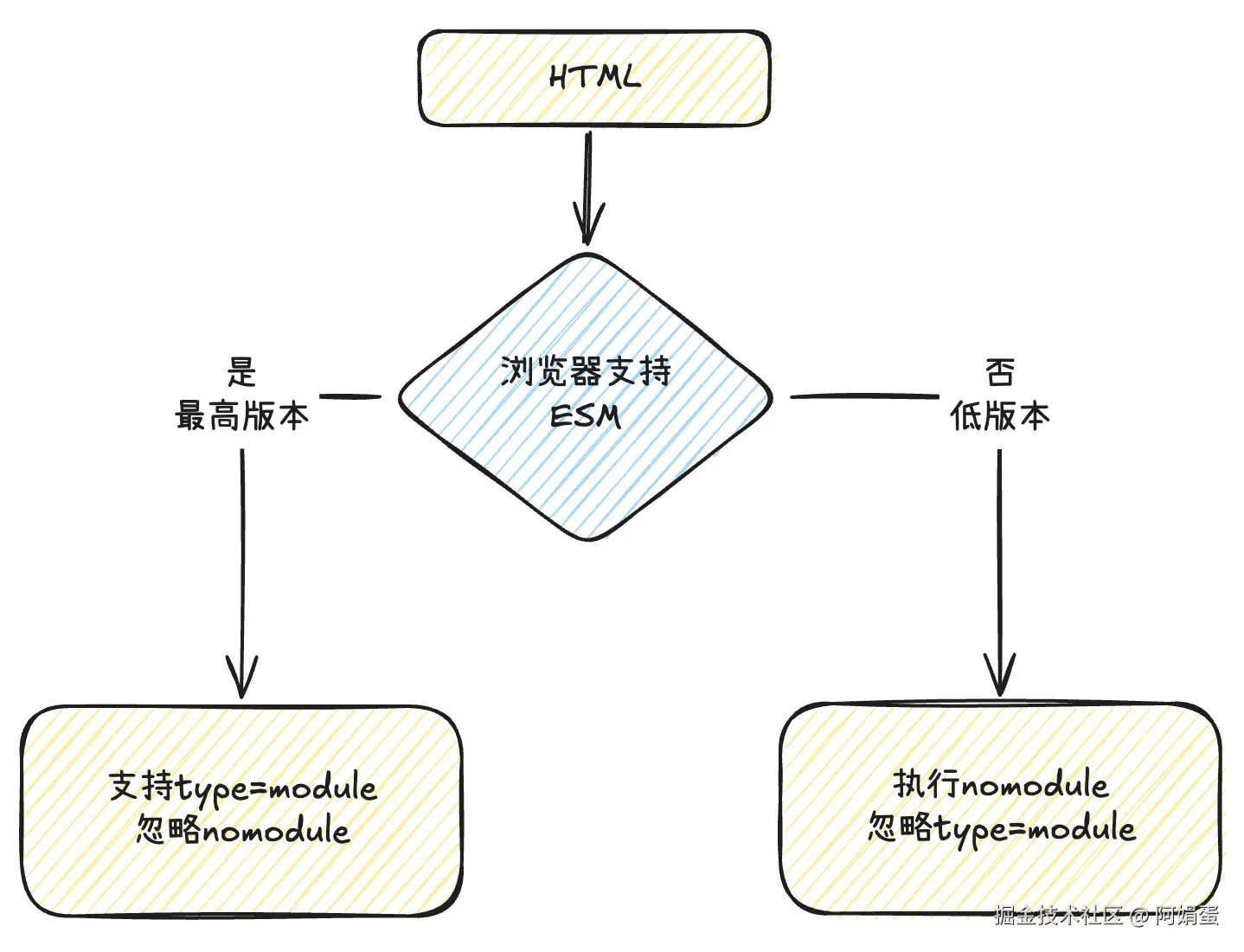 Modern产物被放到type="module"的 script 标签中Legacy产物则被放到带有nomodule的 script 标签中
