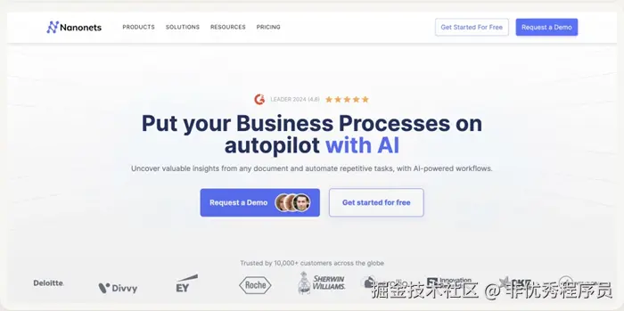 Nanonets 提供 AI 驱动的解决方案,通过提取和处理各种文档类型(如发票、收据和身份证)中的数据来自动化业务流程。他们的平台支持无缝数据提取、丰富和与其他系统的集成,帮助金融、医疗保健和制造业的企业简化工作流程、减少人工工作量并增强决策能力。