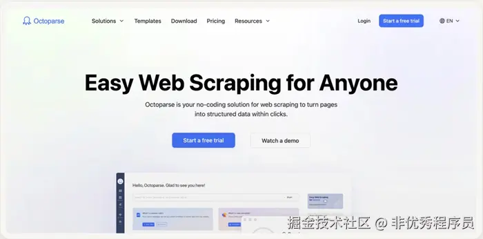 Octoparse 提供无代码网页抓取平台,使用户能够高效地从网站提取结构化数据。它提供的功能包括人工智能自动检测、可视化工作流设计器、IP 轮换、CAPTCHA 解决和基于云的自动化。用户可以创建自定义抓取工具或使用热门网站的预设模板,为电子商务、潜在客户生成和内容策划等各个行业的数据收集提供便利。