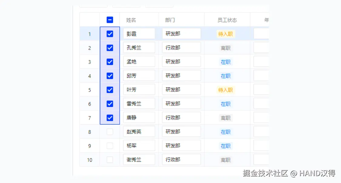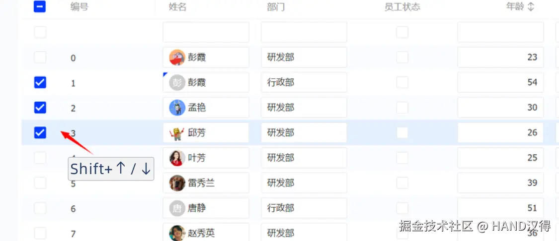 - 快速选择多行:焦点在表格行上,Shift + 方向键可快速选择多行。