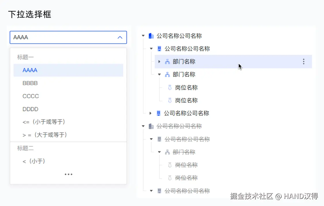 - 下拉选择框: