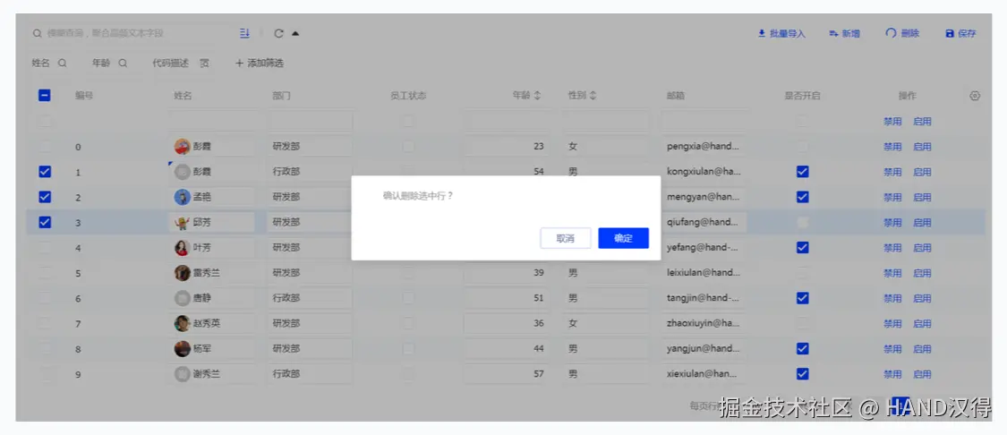 b. 在表格单元格内,使用 Alt + Delete 可以删除当前行,并会弹出二次提示框,以确保操作的准确性。