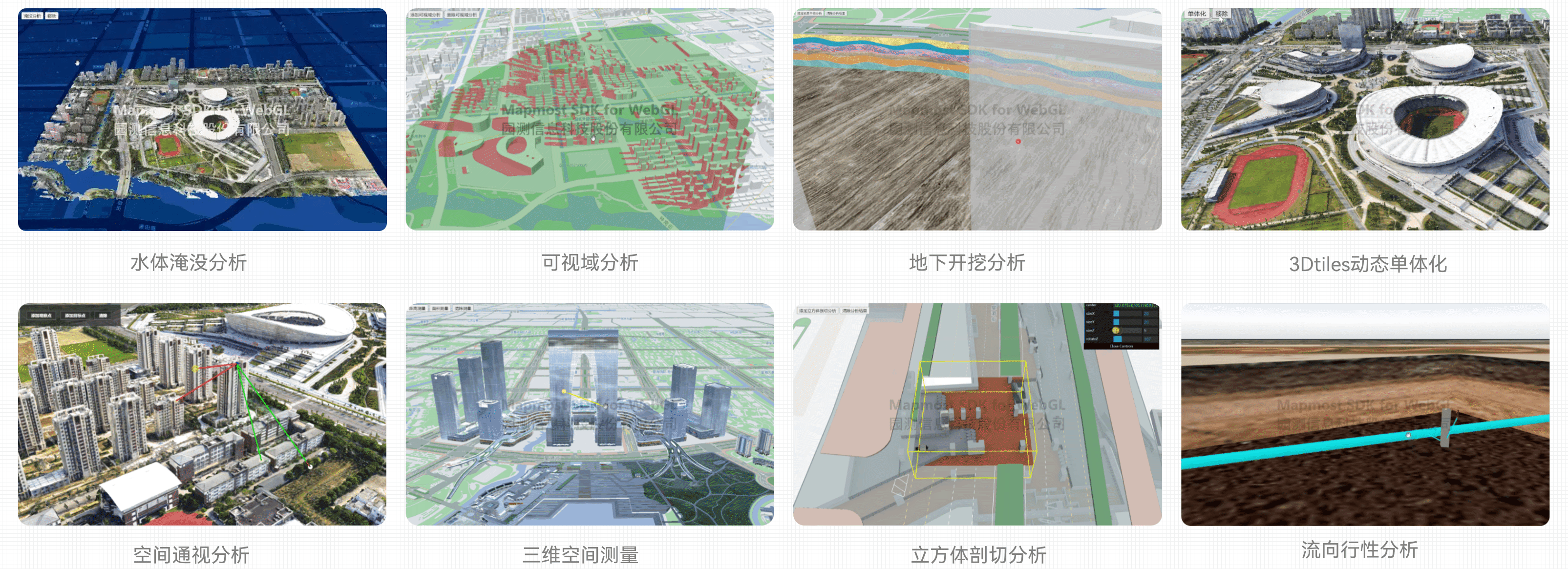 Mapmost不能仅能展示地图场景,还内置淹没分析、可视域分析、开挖分析、通视分析、地下模式、三维空间测量等10多种空间分析接口,用于实现复杂三维GIS业务功能。利用空间分析能力,能显著提升地理信息分析的能力,使得对现实世界事件和变化的理解与预测更为准确,从而促进了更优的决策和规划。为城市规划、灾害管理、军事部署、安全监控、旅游规划、建筑工程、通信布局和地下基础设施规划等领域提供全面的数据支持和模拟分析工具。