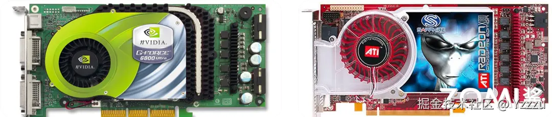 随着时间的推移,GPU 技术迅速发展。从 2000 年到 2005 年,GPU 的运算速度迅速超越了 CPU。在 2001 年,英伟达和 ATI 分别推出了 GeForce3 和 Radeon 8500,这些产品进一步推动了图形硬件的发展。图形硬件的流水线被定义为流处理器,顶点级可编程性开始出现,同时像素级也具有了有限的编程性。