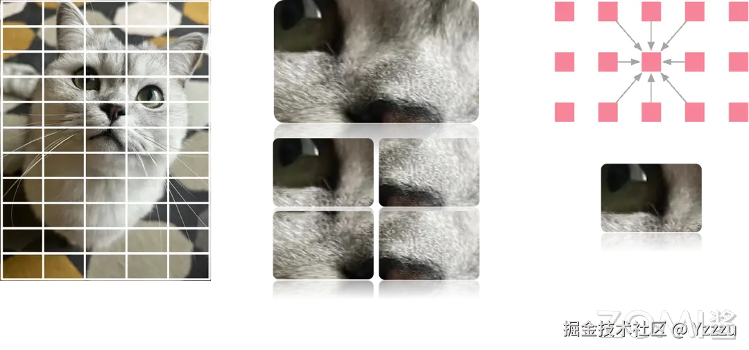 - 1)用网格(grid)覆盖图片,将图片切割成多个块(block);