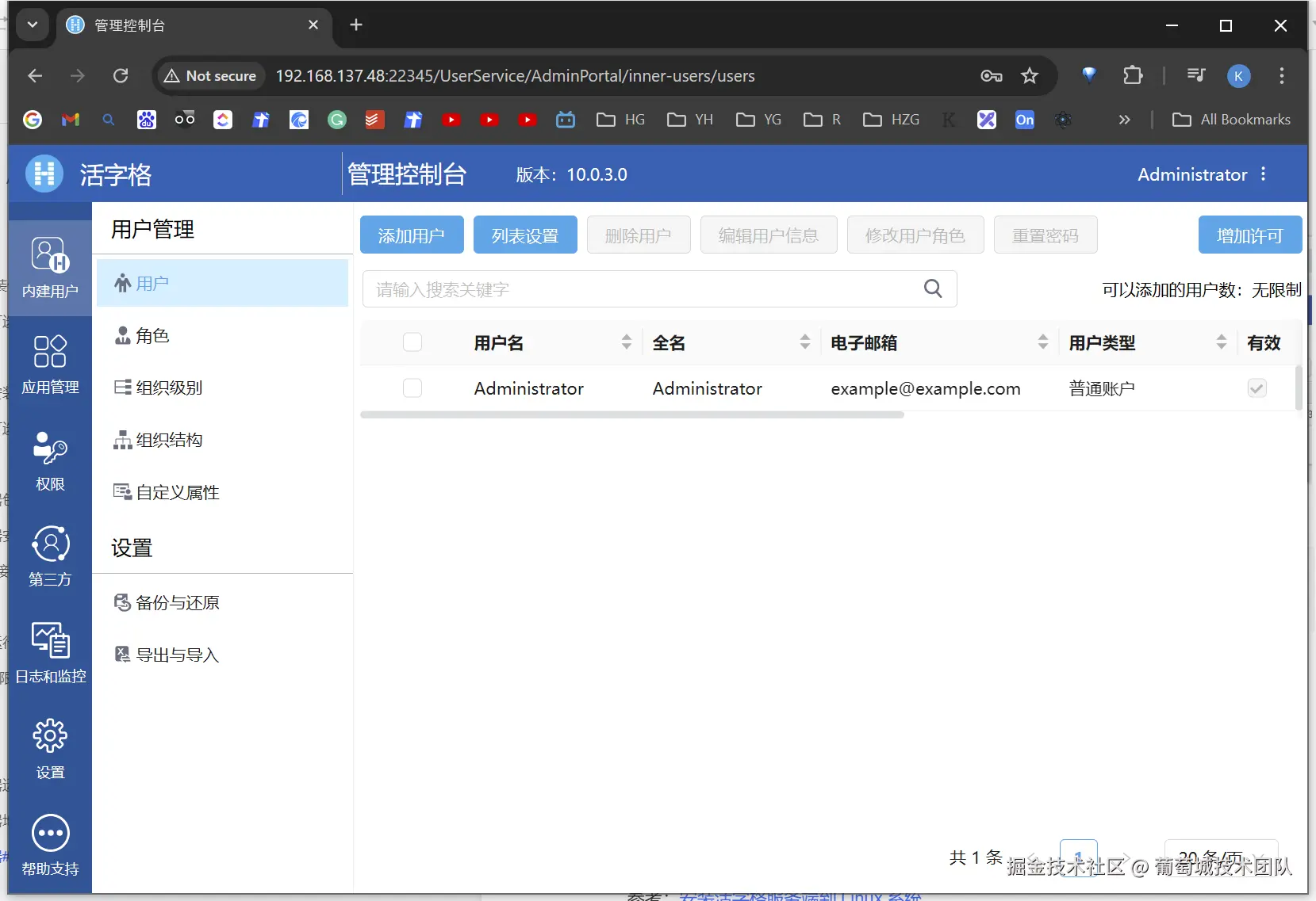 - 登录到活字格管理控制台。输入用户账户管理的用户名和密码,进入活字格管理控制台。