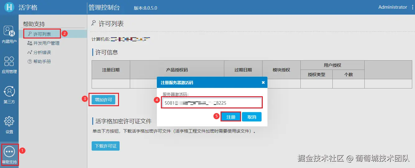 由于生产环境与公网隔离,因此需要采用离线激活的方式来激活活字格服务器。激活的具体操作步骤如下: