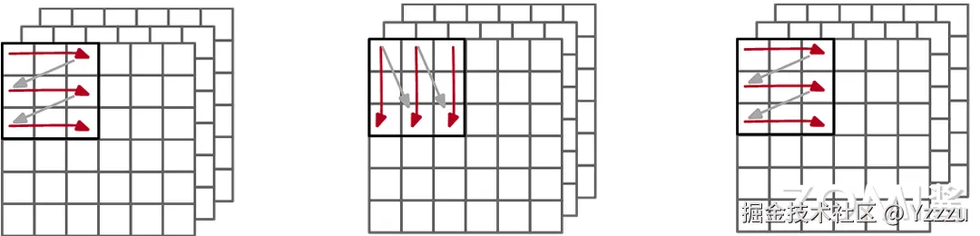 除了 ND 和 NZ 格式,还有其他数据格式,如下图所示,图中最左侧小 z 大 Z,即为 ND 格式示意图,块内按照行排序,块间也按照行排序,常用于特征图的数据存储。