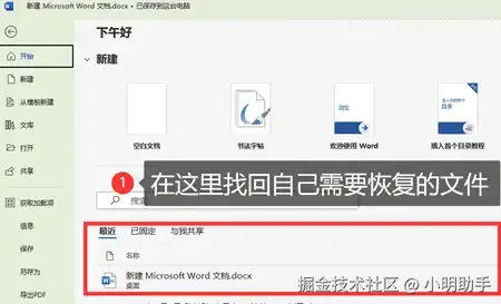 方法1:在Word文档软件的“最近”板块恢复未保存文件