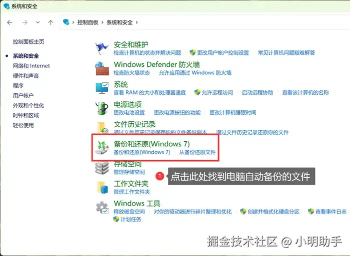 步骤1: 通过桌面下方的菜单启动电脑的“控制面板”,在主页面内点击“备份与还原”该选项;
