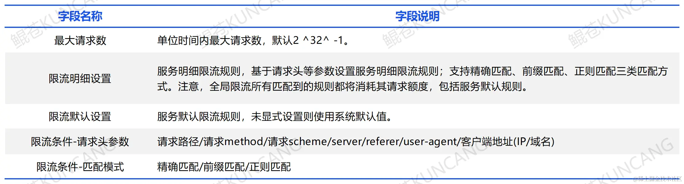 服务限流(Rate Limiting) :面对流量风暴,或可预知的大流量冲击,对指定对象进行流量限制,可以有效防止瞬时流量过大造成的服务故障或者单个服务占用过多资源导致的服务不可用。