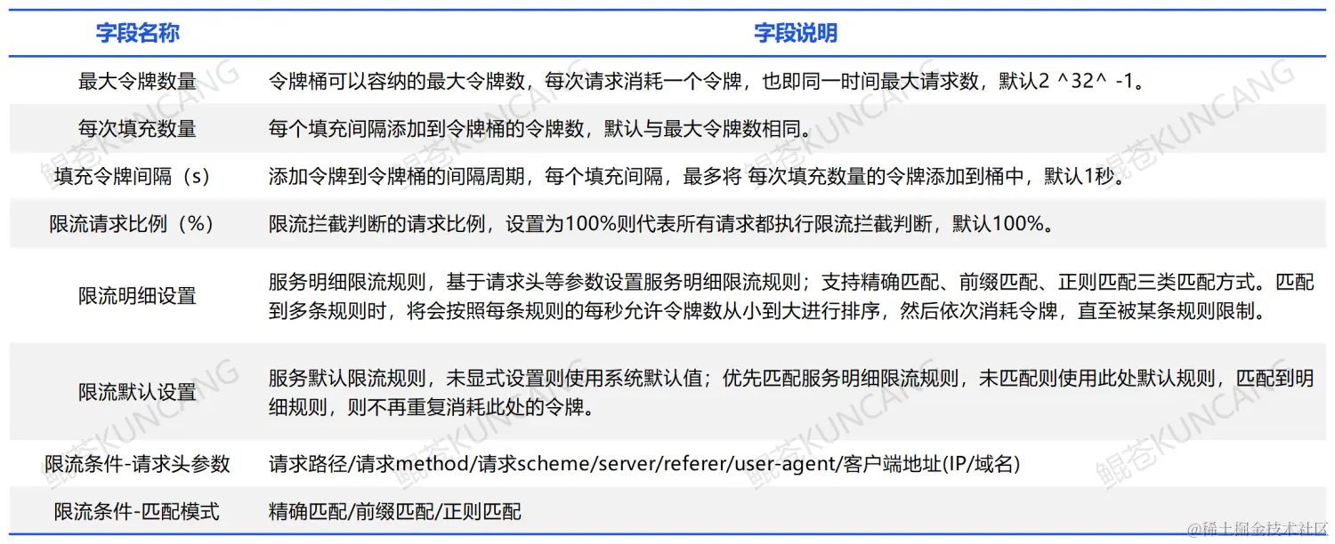 本地限流采用令牌桶算法进行限流,限流预算仅限于单个服务实例维度。每一条限流明细之间集合关系为交集。