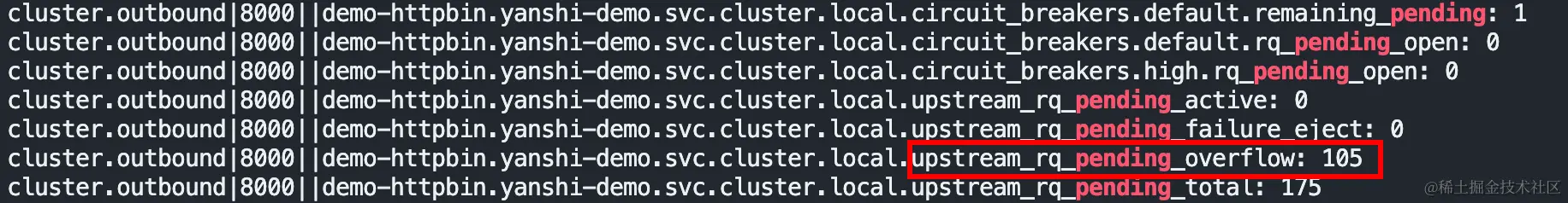 【kubectl exec "$FORTIO_POD" -c istio-proxy -n yanshi-demo -- pilot-agent request GET stats | grep httpbin | grep pending】