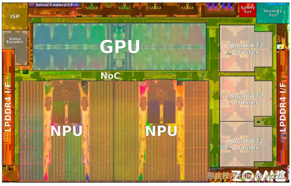 我们以一个具体的例子来引入:特斯拉 HW3 FSD 芯片(如下图),我们可以看到其单一芯片却有着 CPU,GPU,NPU 多种架构。