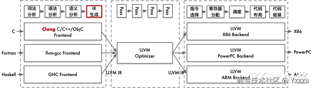 这个阶段属于代码生成之前的过程,和硬件与目标无关,所以在前端的最后一个环节是 IR 的生成