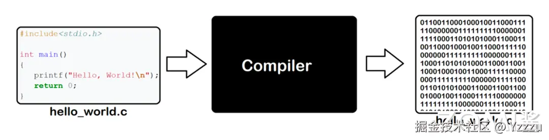 - 编译器读取源程序代码,输出可执行机器码,即把开发者编写的代码转换成 CPU 等硬件能理解的格式