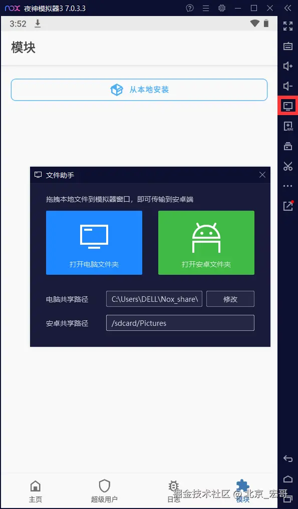2.下载后将它放入到模拟器的/sdcard/Pictures文件夹下,使用magisk 安装,点击图标,如下图所示: