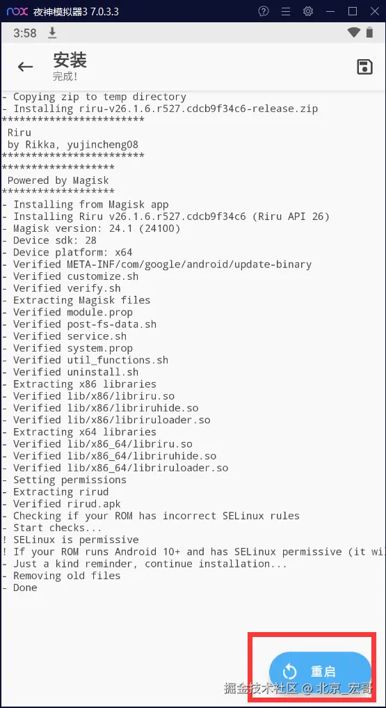 C.在设置中 去掉勾选 开启root (不用 root了),然后 重启, 显示这样 就是 安装成功